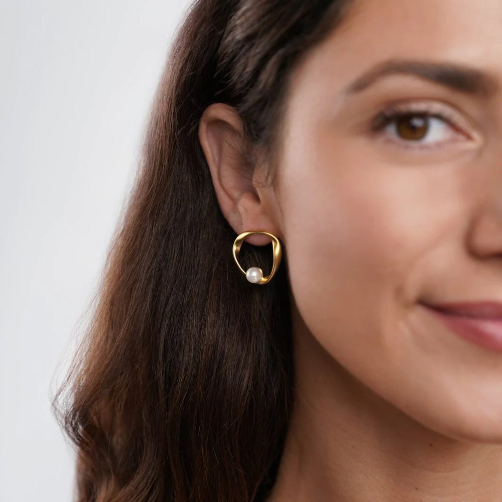 Con una perla brillante como punto focal, estos aretes están enmarcados por un elegante aro dorado , creando una combinación perfecta de encanto tradicional y estilo contemporáneo .