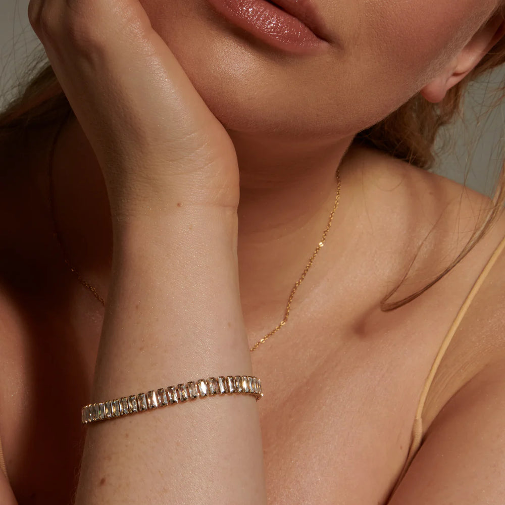 The Diamond Chain Link Bracelet is a captivating piece of jewelry that marries elegance with modern design. Crafted in responsibly sourced 10K solid yellow gold, this bracelet features a unique interlocking link design. Dazzling diamonds are meticulously set along the chain, creating a mesmerizing display that catches the light with every movement. Whether worn alone or layered with other bracelets, this piece adds a touch of luxury and sparkle to any wrist. 💎📿✨