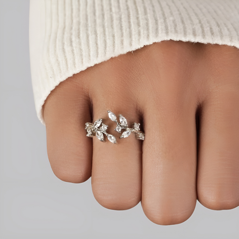 - Intricate Design: The vine-inspired design weaves through the ring, with delicate crystals adding a touch of sparkle.