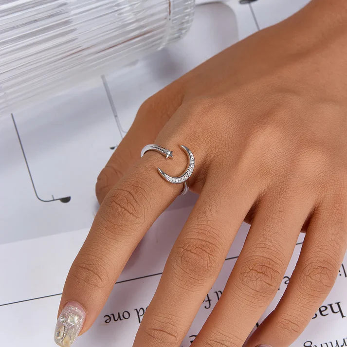 Moon & Star Sterling Silver Ring