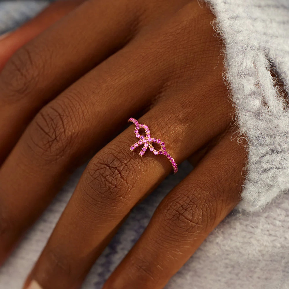 Give the gift of a sparkly surprise with the Pink Pavé Bow Ring, a beautiful expression of love and celebration.