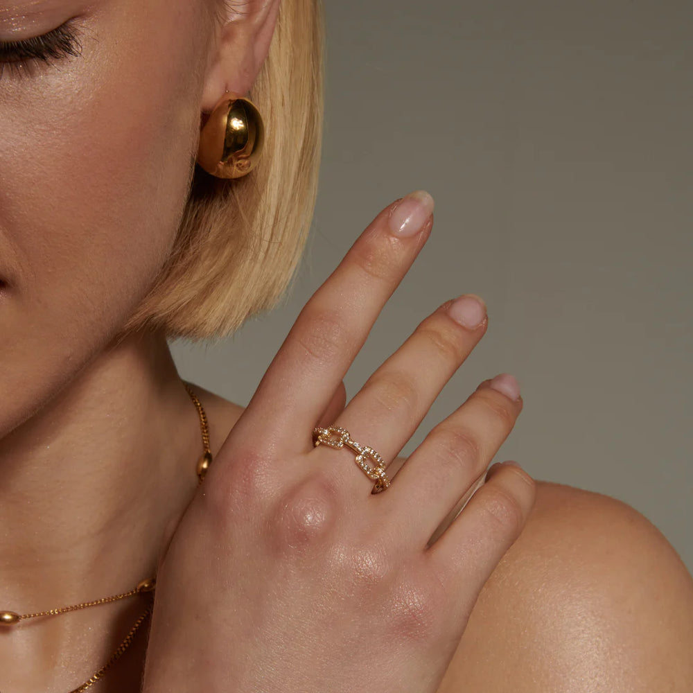 - 🔗 Interlocking Link Design: Modern and edgy chain link design that adds a contemporary touch to a classic ring.