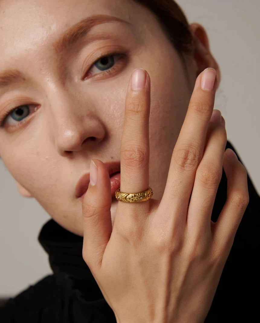 ✨ Featuring intricate patterns that evoke the beauty of celestial bodies, this ring captures the mystery and allure of the universe. The rich golden hue adds a touch of luxury, making it a timeless addition to any collection.